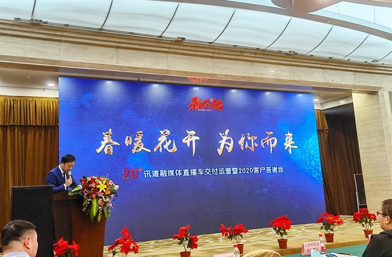 展示會的主要內(nèi)容為“20+迅道融媒體直播車交付運營,暨2020客戶答謝會”。由天影視通科技有限公司、視不錯文創(chuàng)公社聯(lián)盟、山西省當(dāng)?shù)仉娨暸_共同參與了活動。